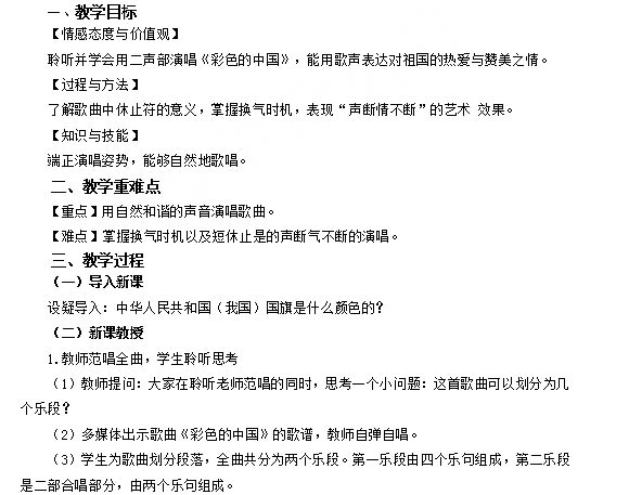 2018下半年初中音乐教师资格证面试真题:彩色的中国