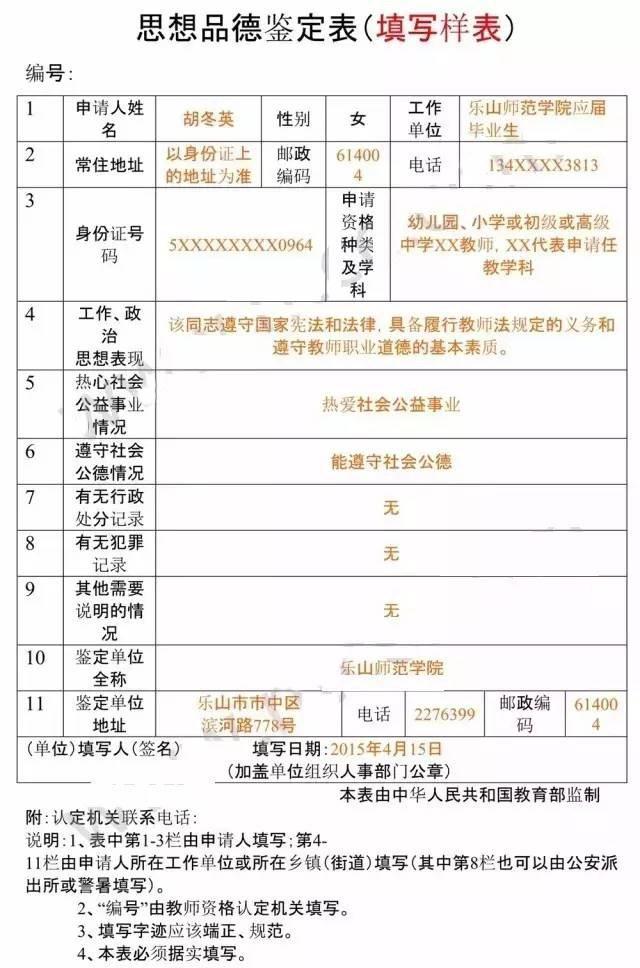 教师资格证认定思想品德鉴定表怎么填?找谁盖章?