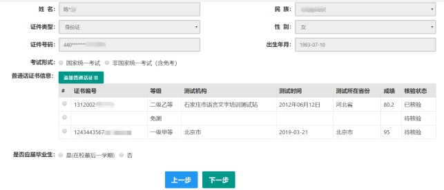处,选择否,并勾选相应的学历和学籍信息。