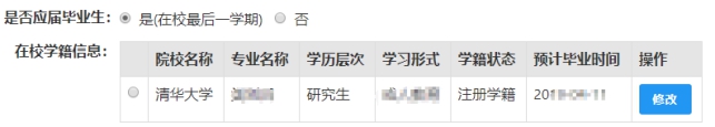 按钮进行修改,后提交即可,如您不需要保留本条信息,请到“个人信息中心”,“学历学籍”模块下,选择“学籍信息”后,点击