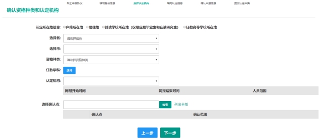 按钮,填写选择认定机构信息,根据本人实际情况选择认定所在地信息、